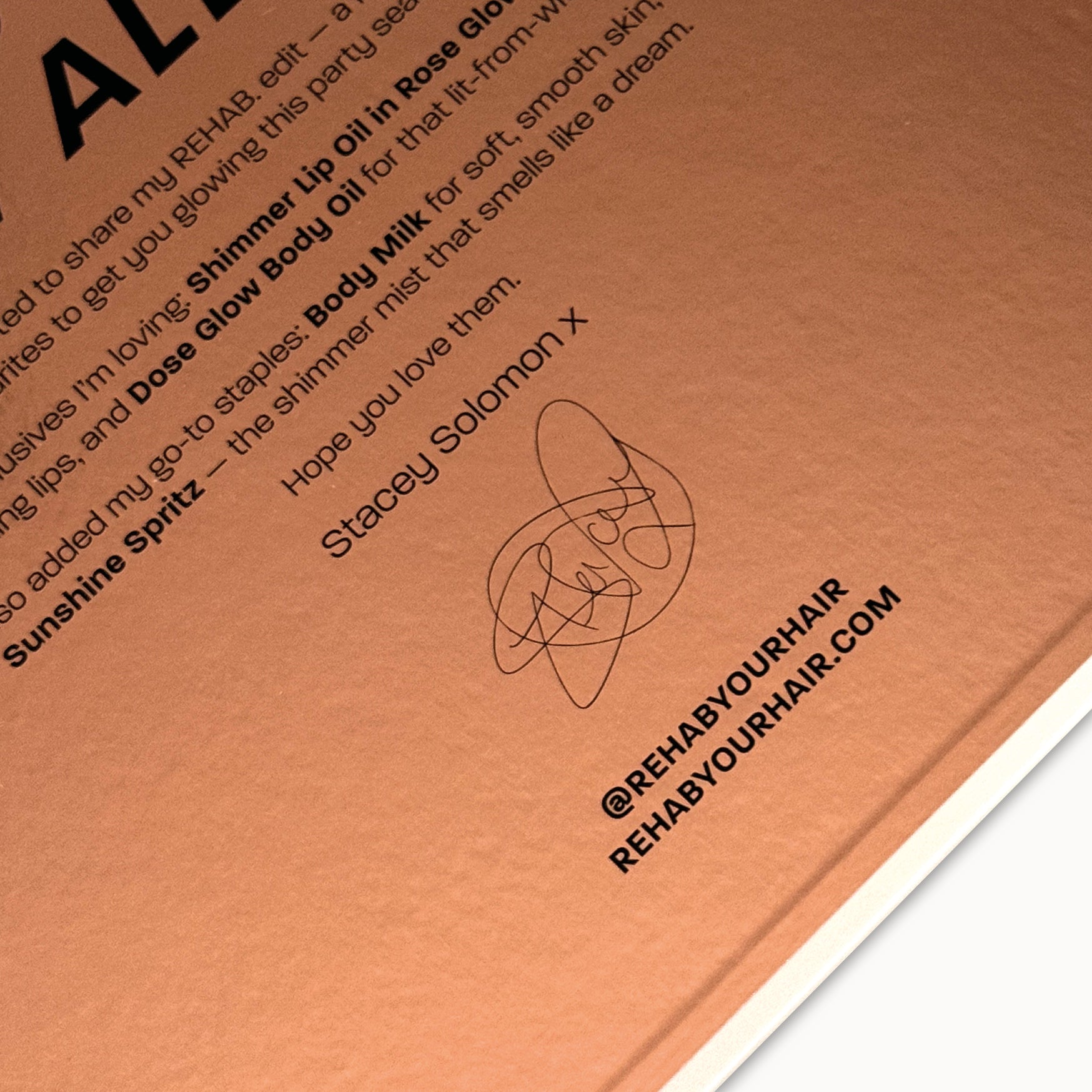 The box features Stacey’s signature, making it the ultimate limited-edition gift for glow lovers.